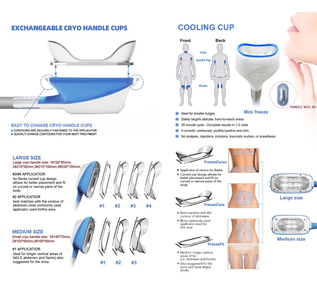 دستگاه کرایولیپولیز خلاقانه می باشد و از تکنولوژی بسیار بالای برخوردار است که شما می توانید اندازه را با توجه به مناطق مختلف بدن تنظیم کنید بر اساس دسته کرایو معمولی، دستگاه داراری یک دسته جدیدمناسب برای چانه و غب غب است. دسته به خوبی روی پوست می آید و تجربه بهتری را به مشتریان می دهد.