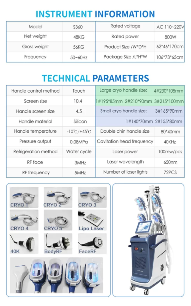 ویژگی های دستگاه لاغری کرایولیپولیز 360